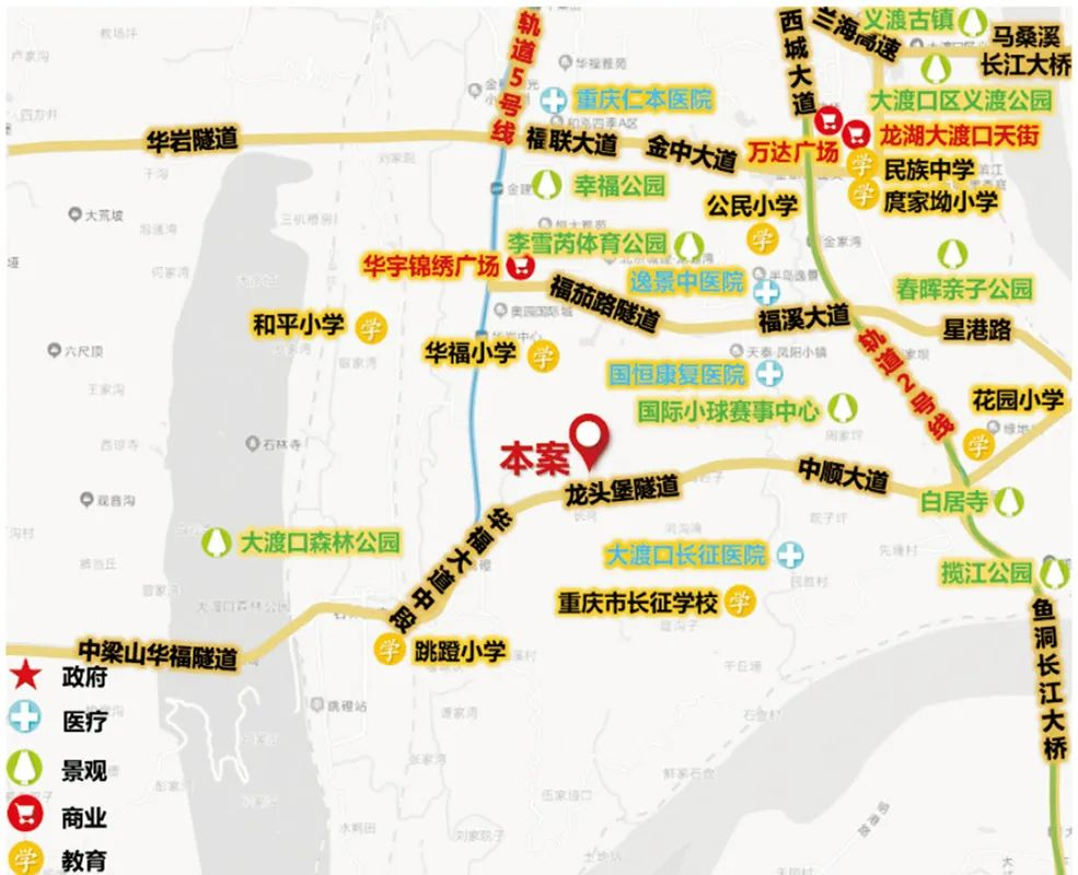 医疗:逸景中医院、国恒康复医院、大渡口长征医院、重庆仁本医院、地块东侧三甲医院拟于近期投用。