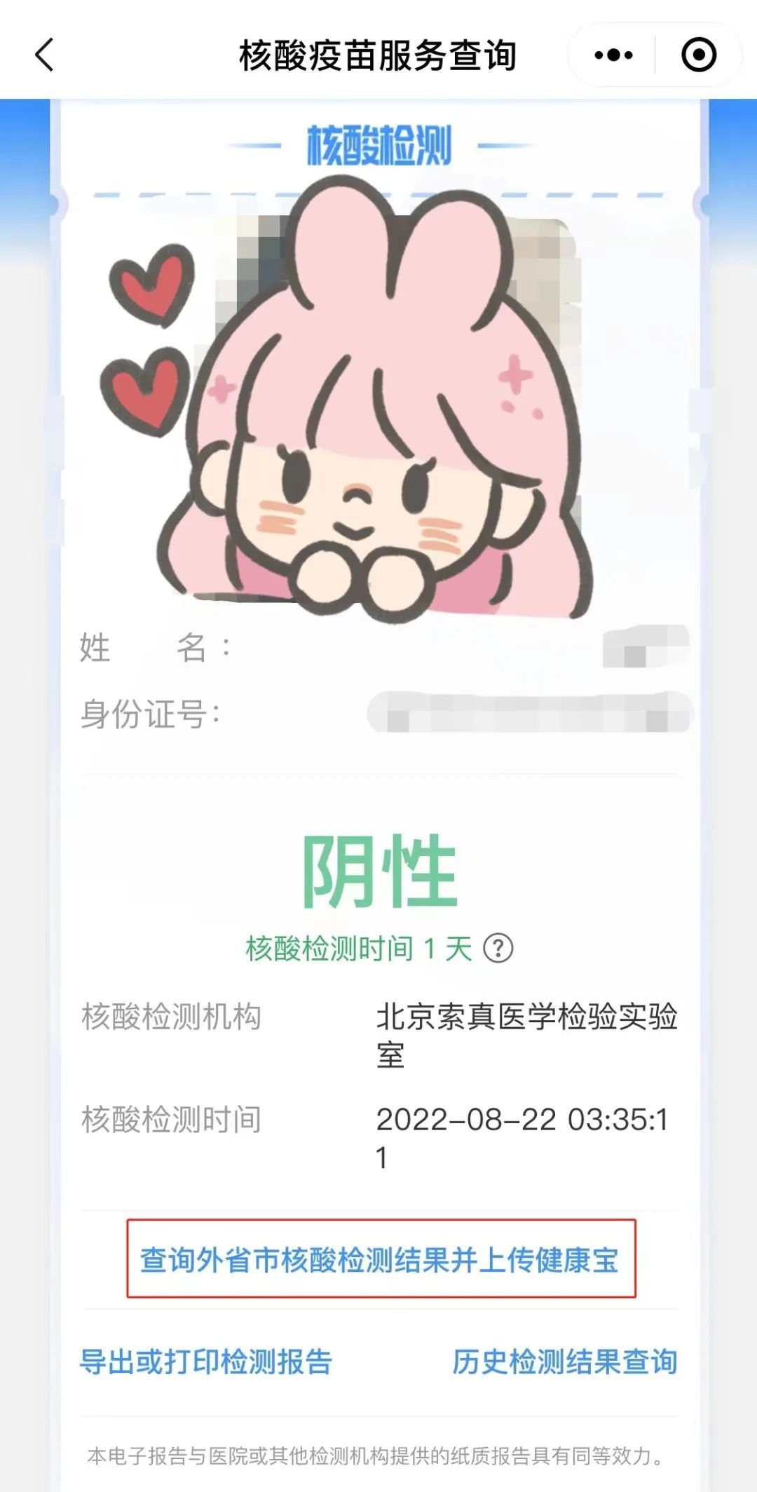 特别提醒,进京需要准备48小时内核酸检测阴性证明,请计划好核酸检测时间,京外地区的核酸检测结果需点击北京健康宝中“核酸疫苗服务查询”→“查询外省市核酸检测结果并上传健康宝”后才能在北京健康宝中显示。