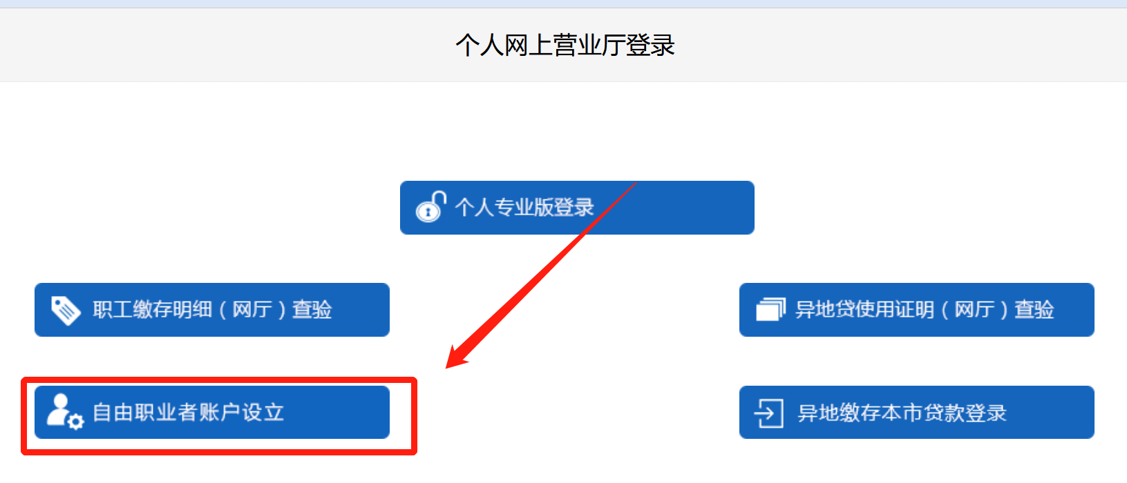 1、打开【住房公积金网站—个人网上营业厅—自由职业者住房公积金账户设立】