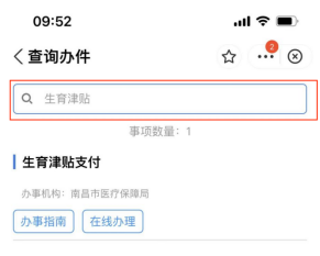 ②点击“办事服务”→在搜索栏搜索“生育津贴支付”