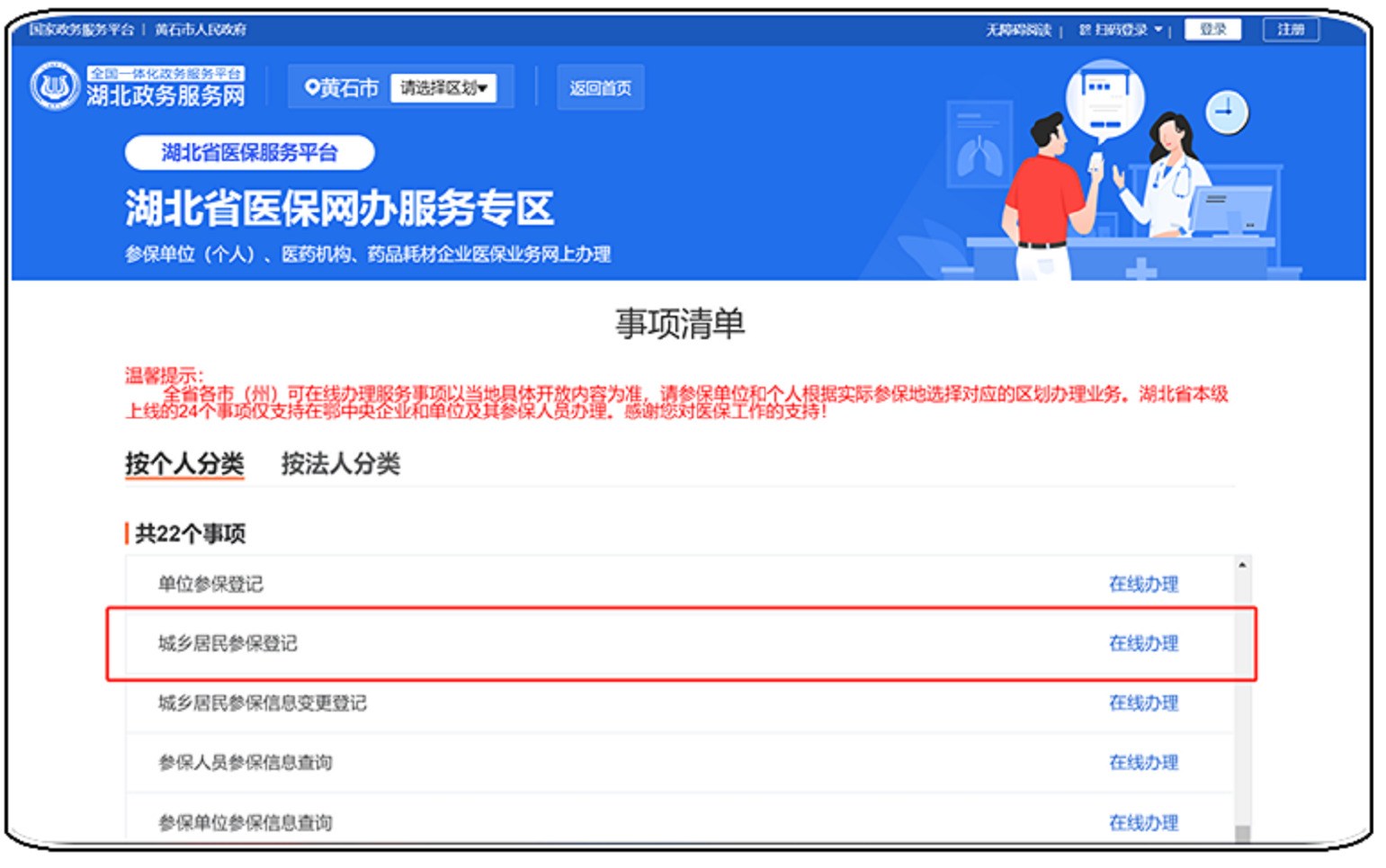 如果您是首次办理湖北省城乡居民医保,可通过鄂汇办APP和湖北省政务服务网进行参保登记。曾参加过湖北省城乡居民医保的小伙伴可跳过该步骤。