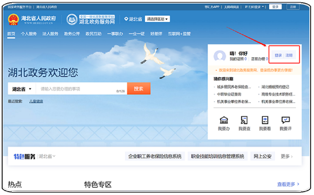 1、第一步:进入湖北政务服务网进行登录,未注册的请先注册;