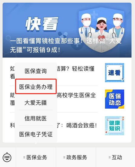 关注“珠海医保”微信公众号,依次选择“医保业务”→“医保业务办理”→“医疗生育保险办理”→“医保在线办理”→“居民医疗保险参保”办理参保。(如下图)