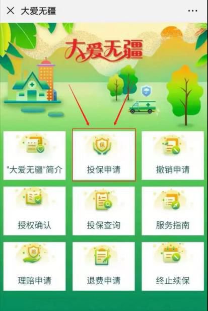 2、参保人点击微信平台“投保申请”进入投保申请页面。