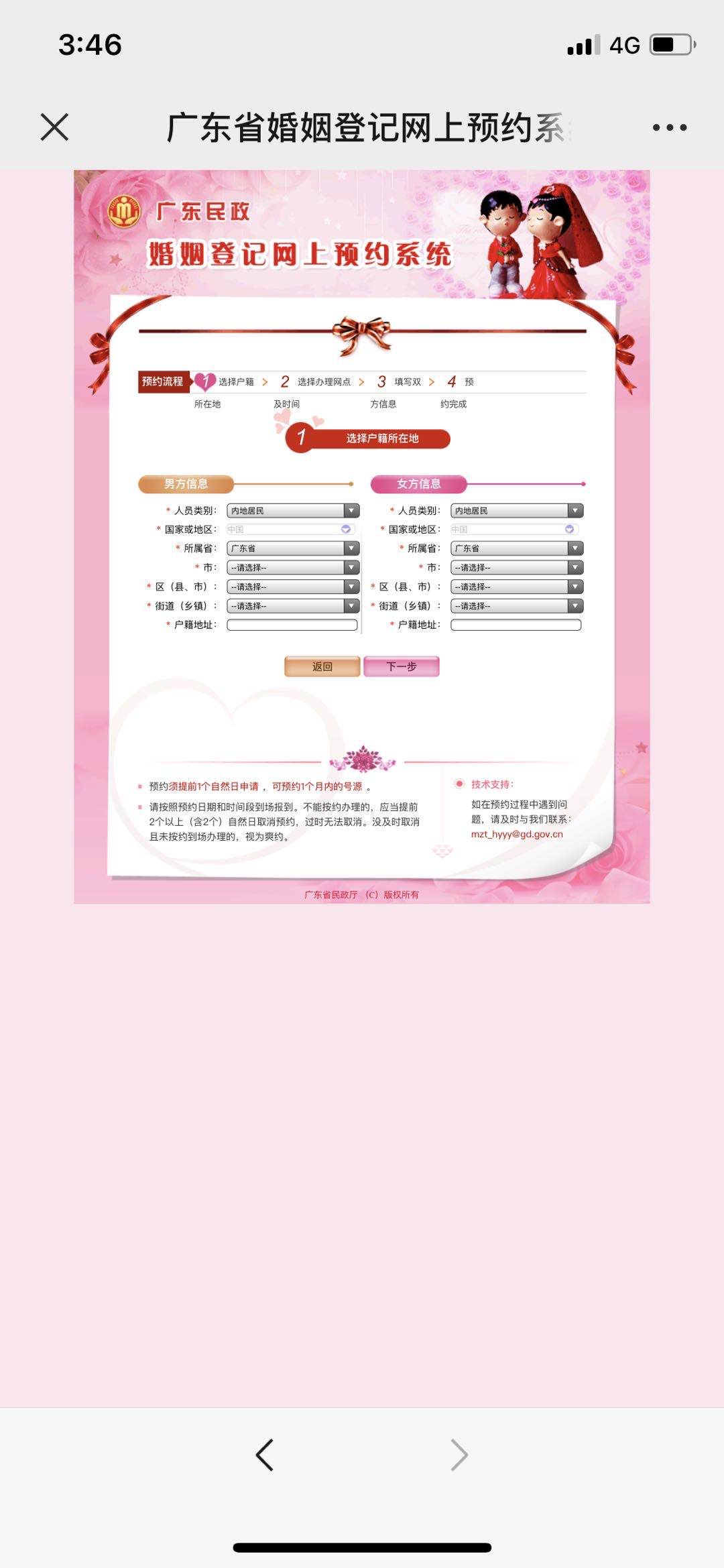 3.进入页面后填写双方正确的个人信息,填写完后进入下一步,根据系统提示继续操作即可预约成功。