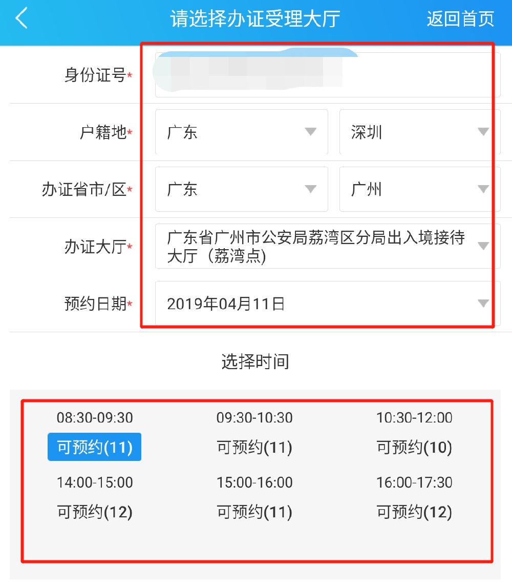 第三步:根据提示填报申请资料,预约申请的时间和选择办证地点;