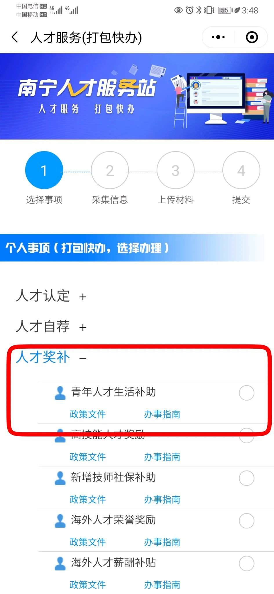 进入后点击人才服务>>>人才奖补>>>青年人才生活补助,按提示填写材料、上传附件即可。