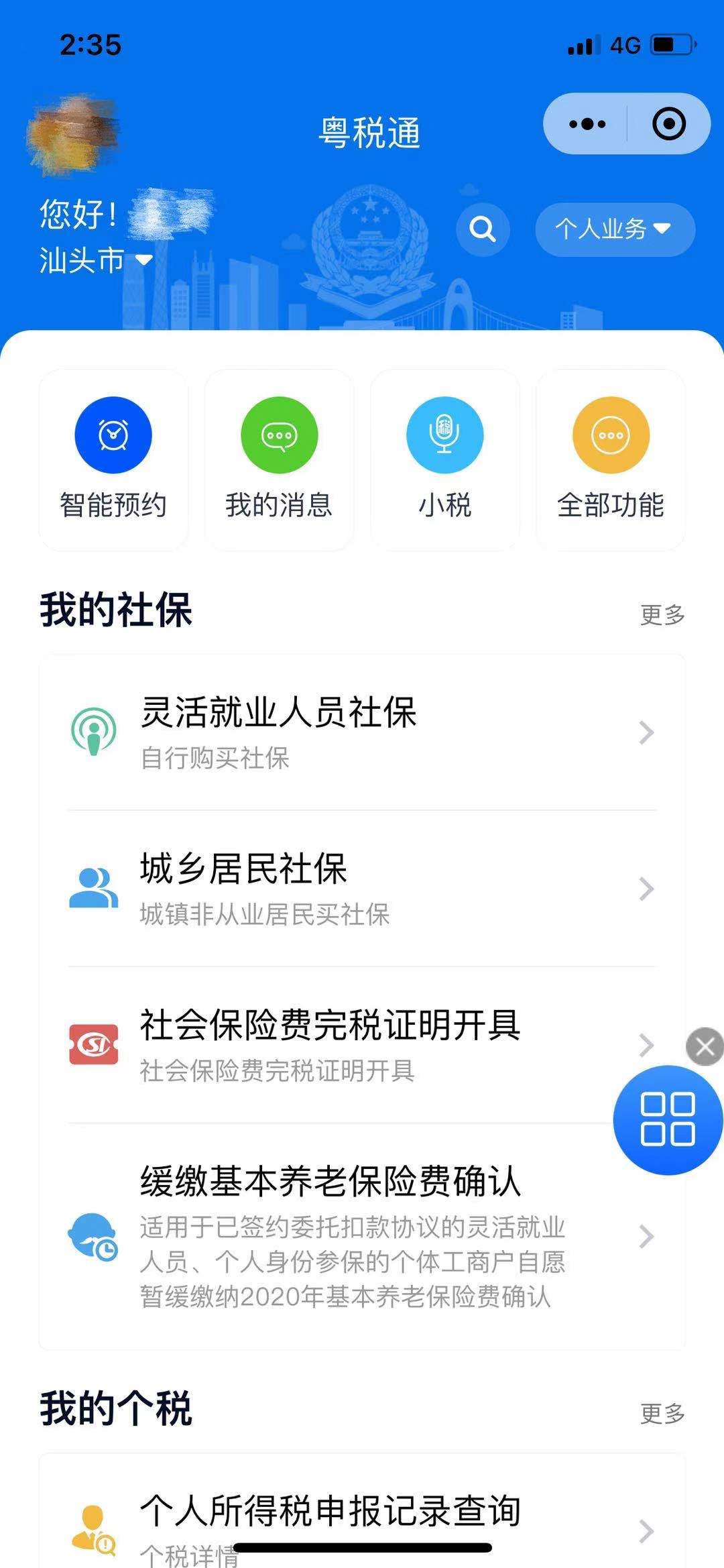1.微信端进入“粤税通”小程序,登陆个人信息,左上角地址选汕头市。