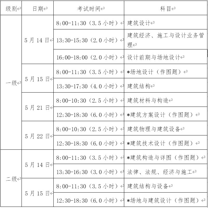 注:带*号的5个作图题科目的应试人员于考试前30分钟进入考场做准备。
