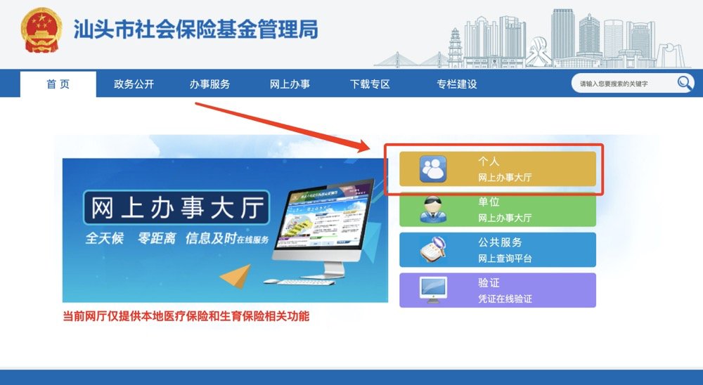 查询入口:汕头市社会保险网上办事大厅