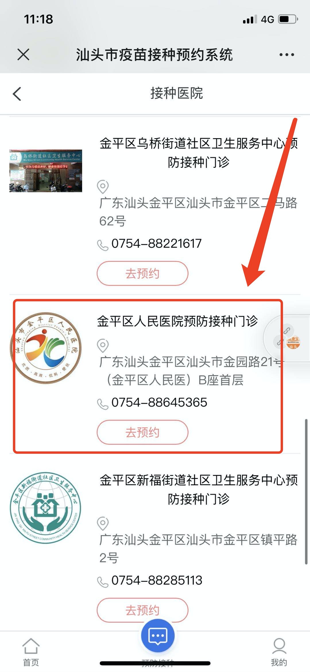 1.进入系统选择金平区人民医院预防接种门诊(目前有国产hpv疫苗)