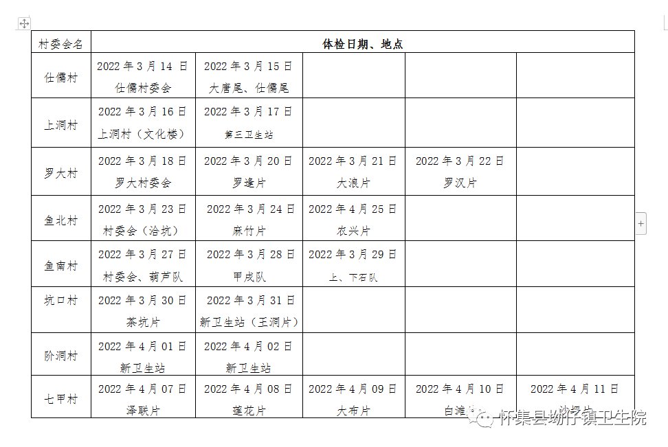 体检时间地点安排
