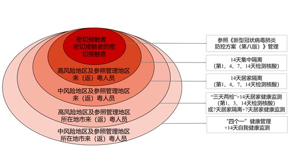 4.对有高风险地区所在地市及参照管理地市(除高中风险地区外)旅居史来(返)粤人员:“三天两检”和14天居家健康监测;*参照高风险地区所在地市管理(2个):江西省上饶市;河南省郑州市。