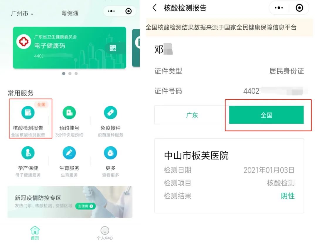 关注“粤健通”微信小程序→在新冠疫情防控专区查看核酸检测报告。