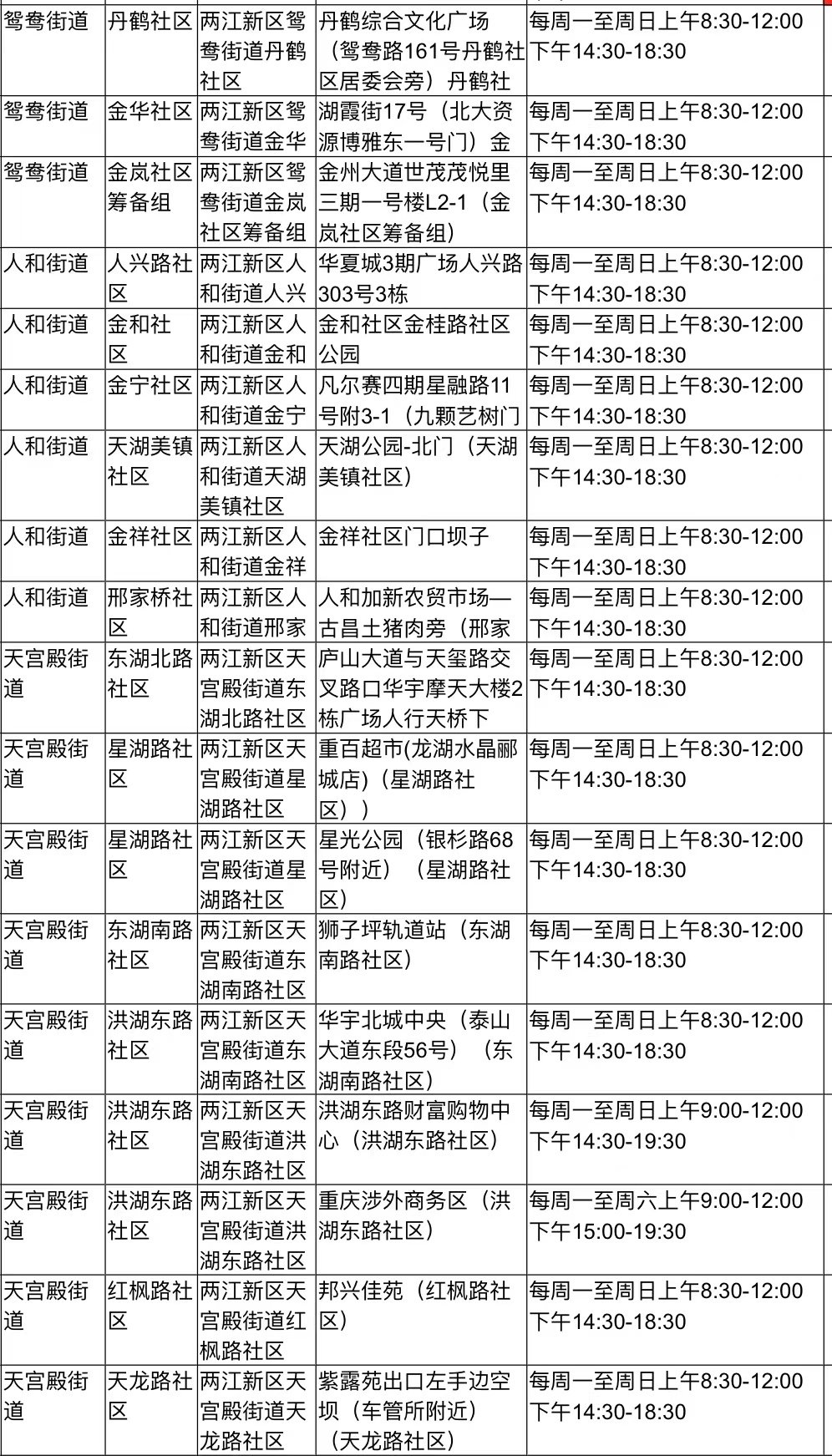 重庆9月两江新区常态化检测采样点(地点+工作时间)
