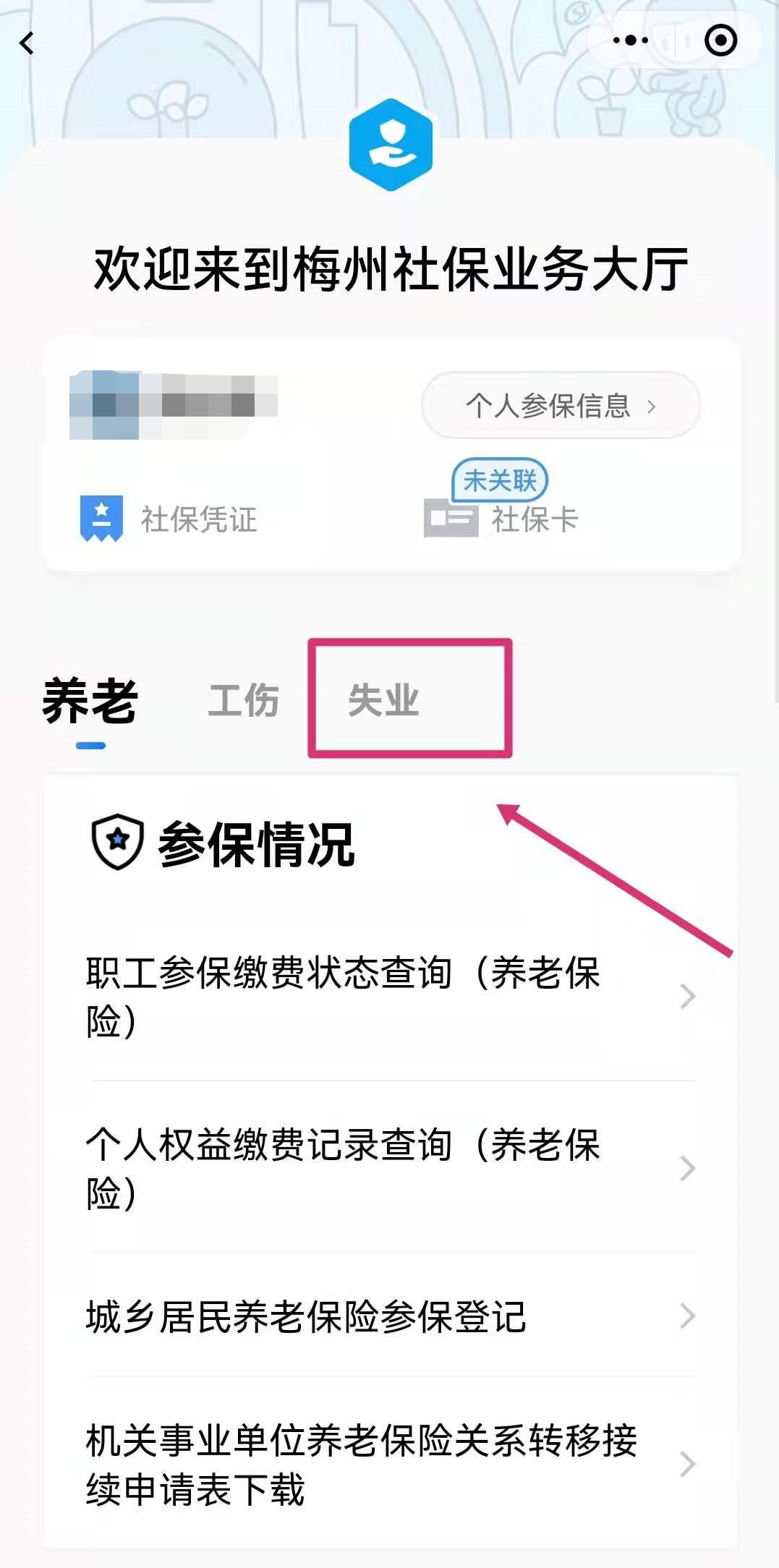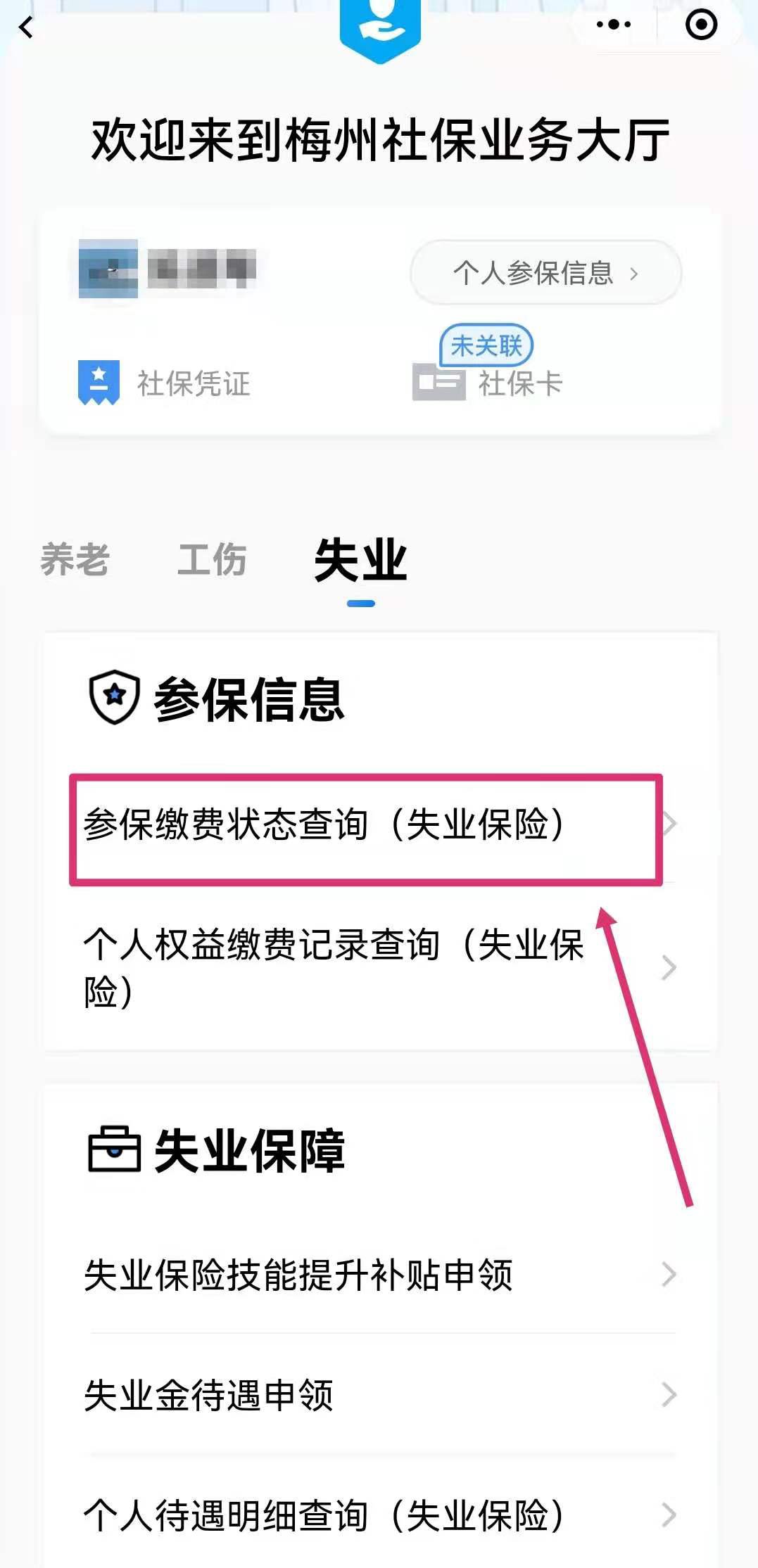 3、选择“失业”一栏,点击“参保缴费状态查询”即可。