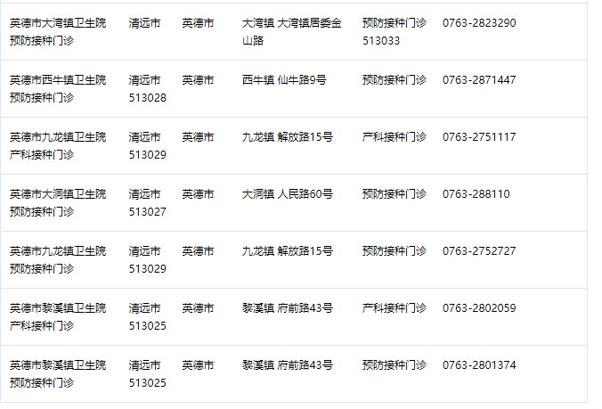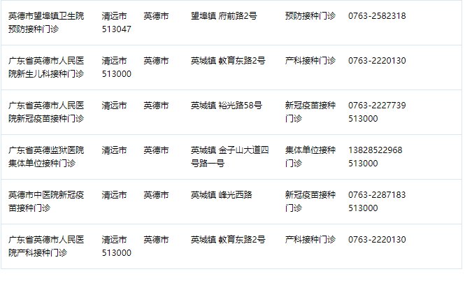 2022英德市疫苗接种门诊一览(电话+地址)