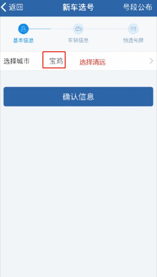 第一步:您需选择新车上牌所在地的城市,点击【确认信息】后,系统会弹出业务须知的对话框,请您务必仔细阅读业务须知,了解业务相关规则。点击对话框中的【阅读并同意】按钮,进入机动车基础信息录入页面,录入内容包括合格证编号(或进口车凭证编号)、车辆品牌、车辆型号、车辆识别代码等信息。