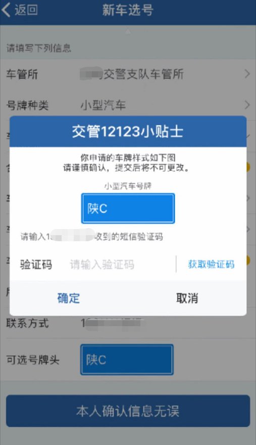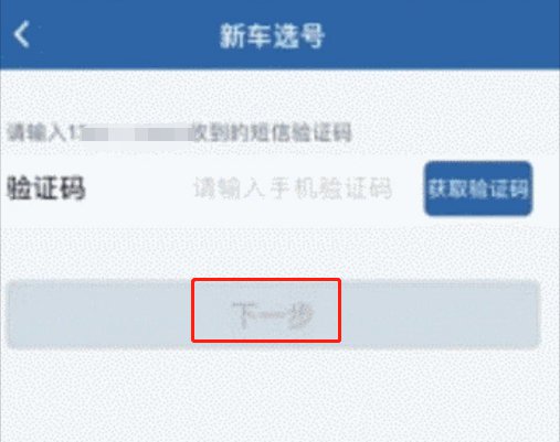 第二步:车辆基础信息确认后,进入预选号牌业务第二阶段,点击【开始选号】,您须获取并录入手机短信验证码,短信验证码核验通过的,进入自编选号页面。