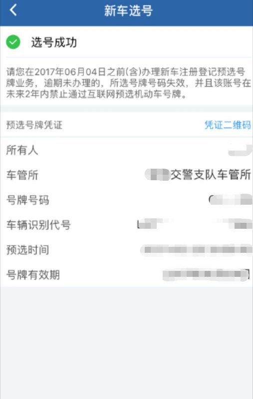 完成选号后,系统将显示选中号牌的有效期限,您需要在这之前办理注册登记业务。如果逾期未办理的,您选中的号牌将失效,且您将会被列入黑名单,且不允许在互联网上进行预选号牌号码,2年后将自动解除黑名单。