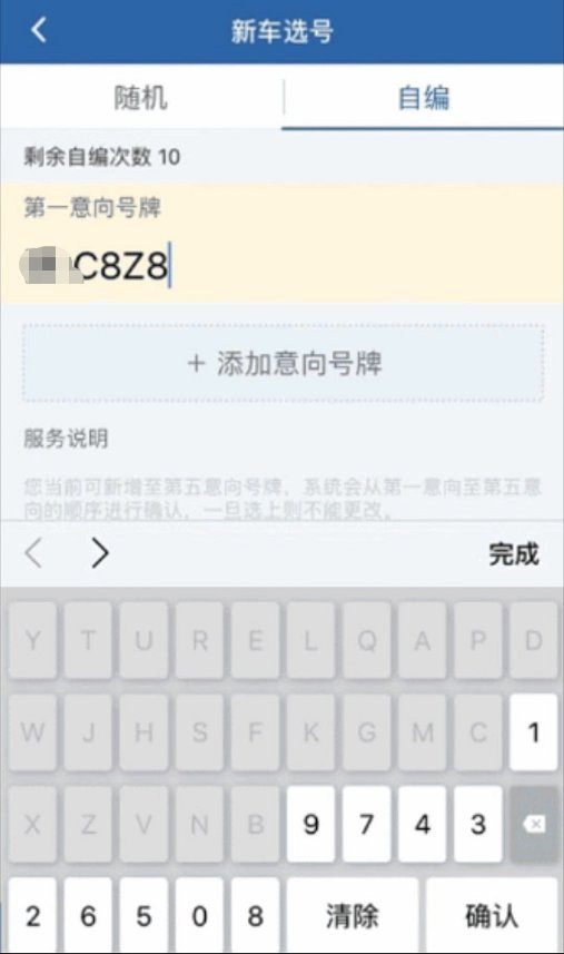 自编选号时用户可在公示号池中查看已放号牌号段,根据已放号牌号段进行编写。可同时录入5个意向号牌,系统会按照录入顺序依次验证,注意把最心仪的号牌录在第一个。
