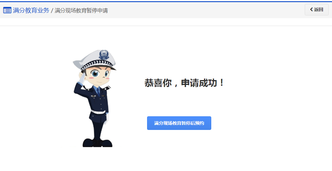 步骤3:【暂停成功】暂停成功后可点击【满分现场教育暂停后预约】进入重新预约流程,操作界面如下图所示: