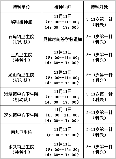 11月11日,佛冈县开放新冠病毒疫苗接种门诊有: