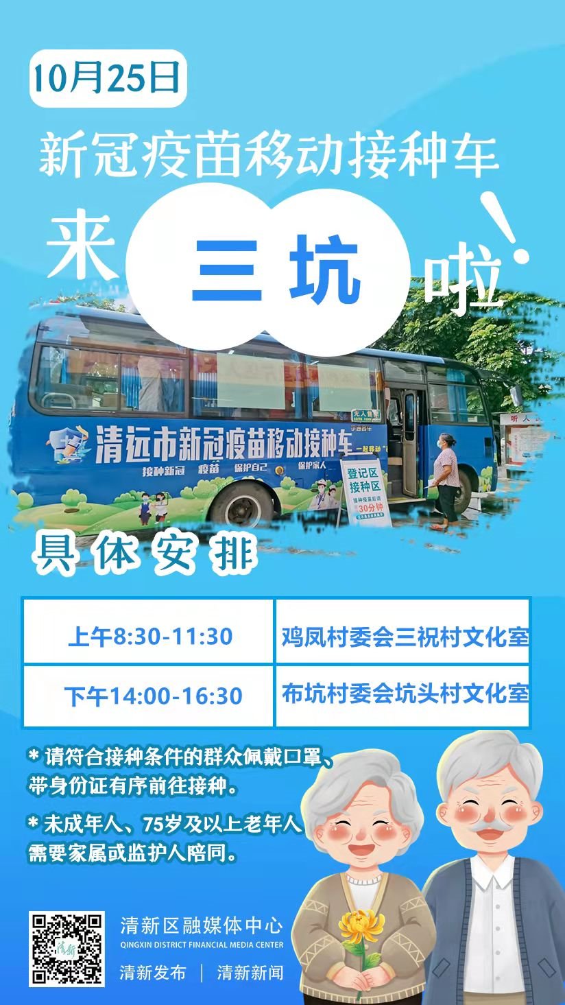 10月25日,清新城区及各乡镇均开放12岁及以上全人群第一针、第二针接种
