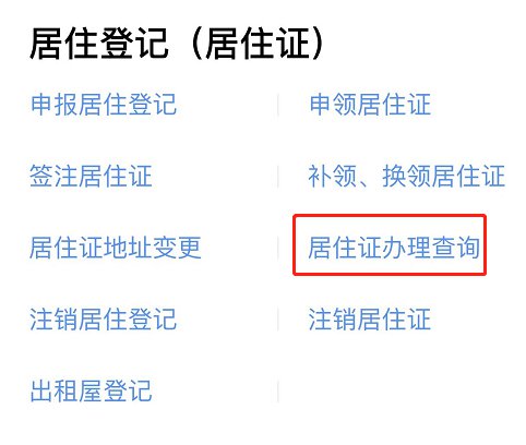 2、在“居住登记(居住证)”一栏中选择“居住证办理查询”;