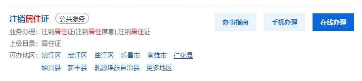 3、在下方找到“注销居住证”一栏,点击“在线办理”;