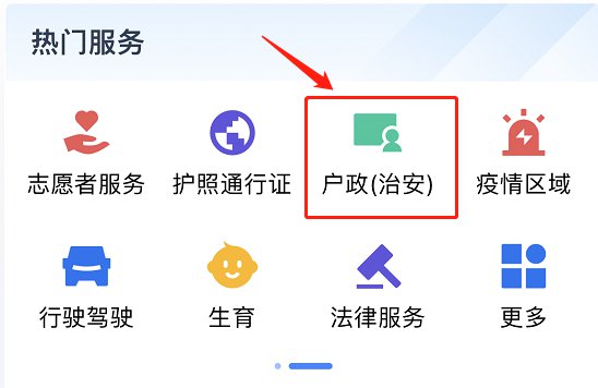 1、进入后在“热门服务”一栏选择“户政(治安)”;