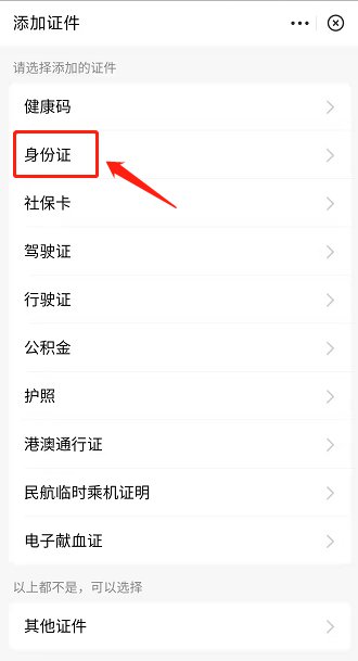 四、然后点击“身份证”。