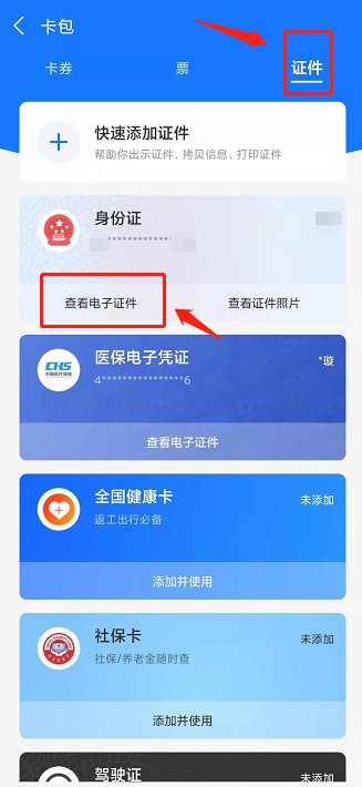 二、【证件】一栏即可看到身份证,点击“查看电子证件”即可。