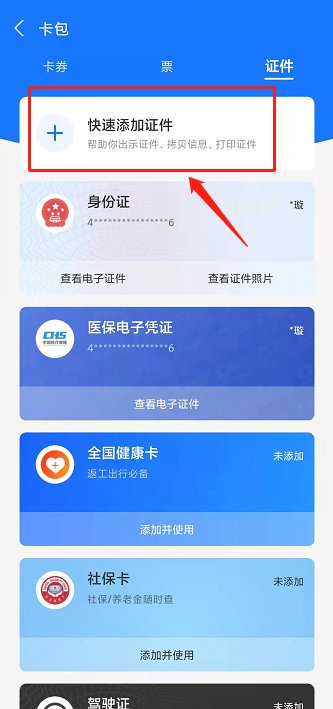 三、如果没有添加身份证,可以点击“快速添加证件”。