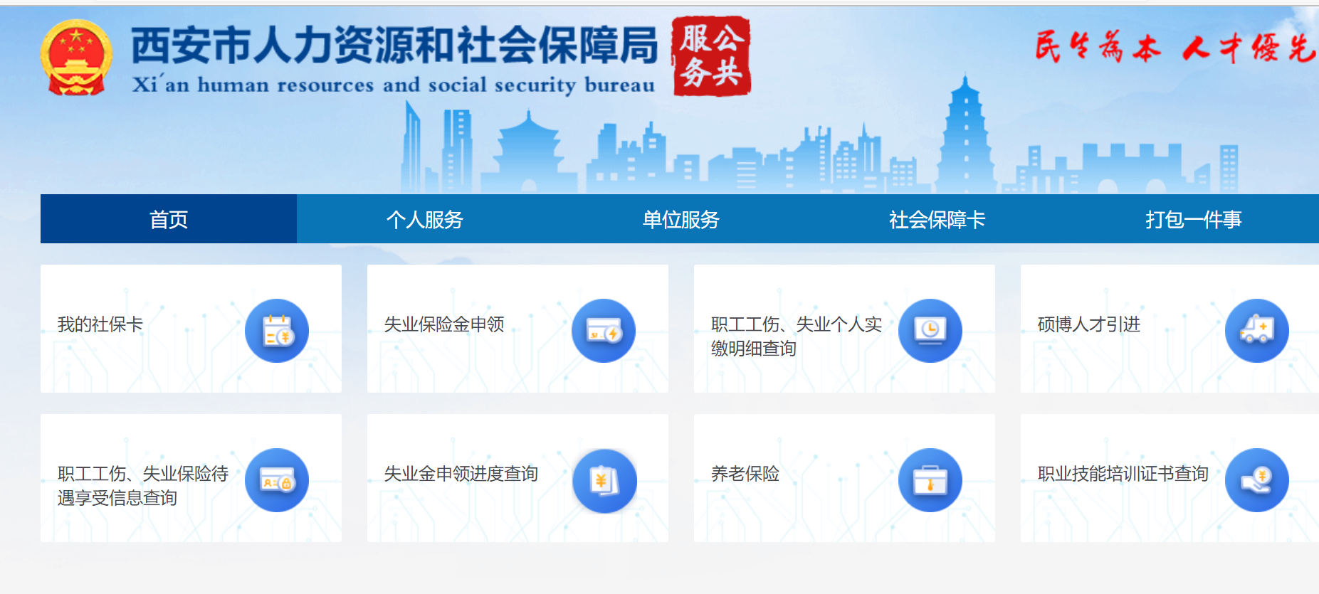 (2)可通过微信搜索关注“西安人社12333”公众号——关注公众号——微官网——手机页面右下角我的——立即登录(首次登录需先注册个人信息)——首页——社保服务——四险服务——职工工伤、失业保险参保证明打印。