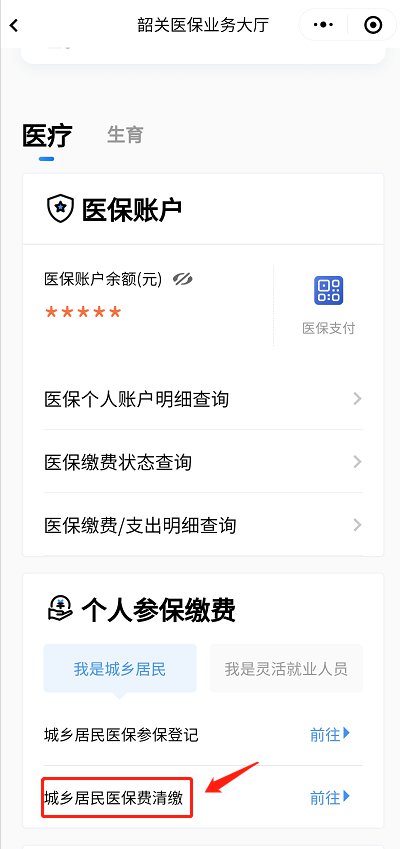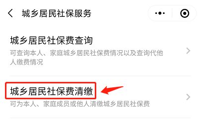 在【个人参保缴费】处选择城乡居民,前往【城乡居民医保费清缴】