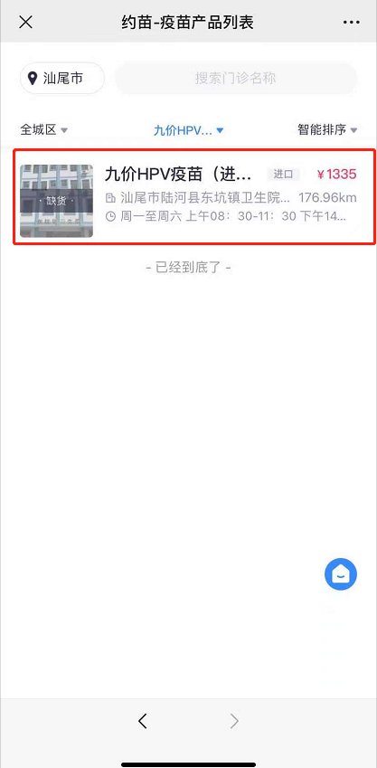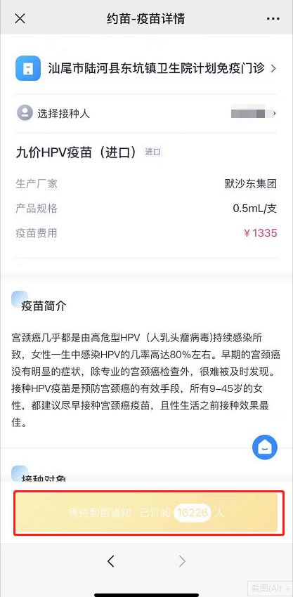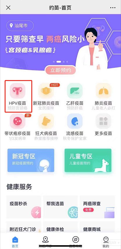 汕尾九价预约“约苗”小程序操作指南