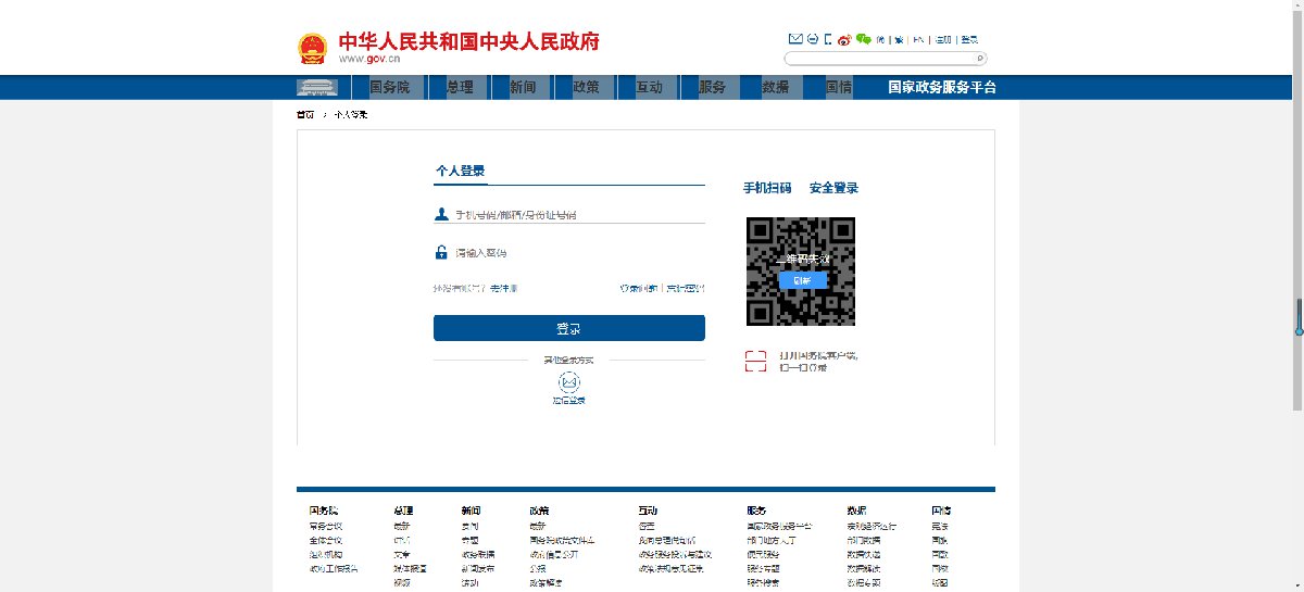 二、登录国家政务平台:https://user.www.gov.cn/