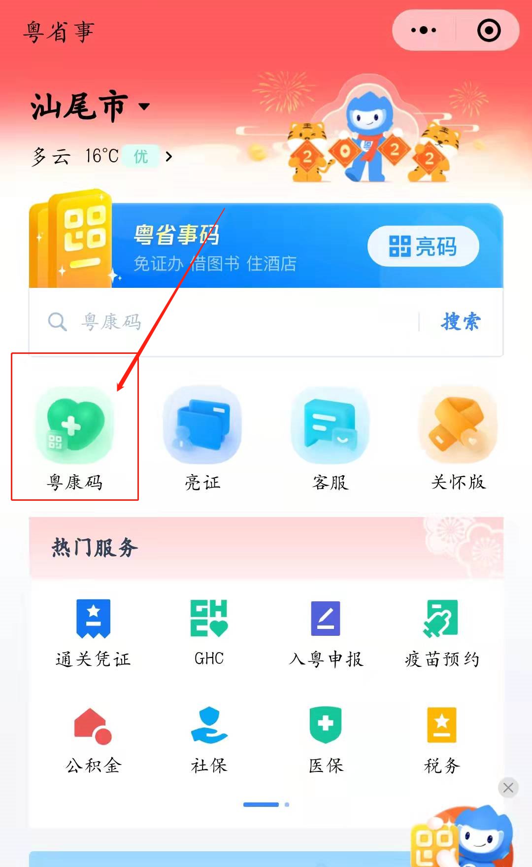 一、进入粤省事小程序: