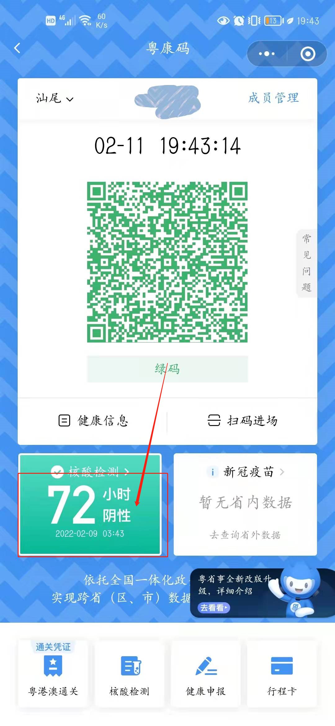 点击粤康码,即可看到核酸检测结果