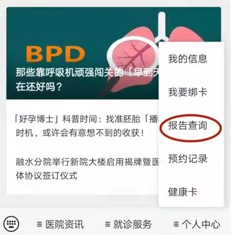 4.纸质报告凭就诊二维码或就诊卡,可在医院自助机打印(24小时开放,晚上也能取报告)。