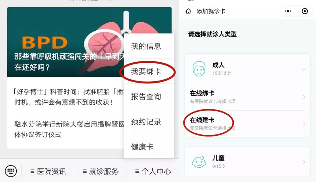 2.自助建卡&绑卡流程:进入个人中心→我要绑卡→在线建卡&在线绑卡→完善自己相关信息。