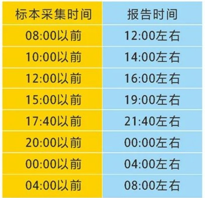 采集标本及出报告时间: