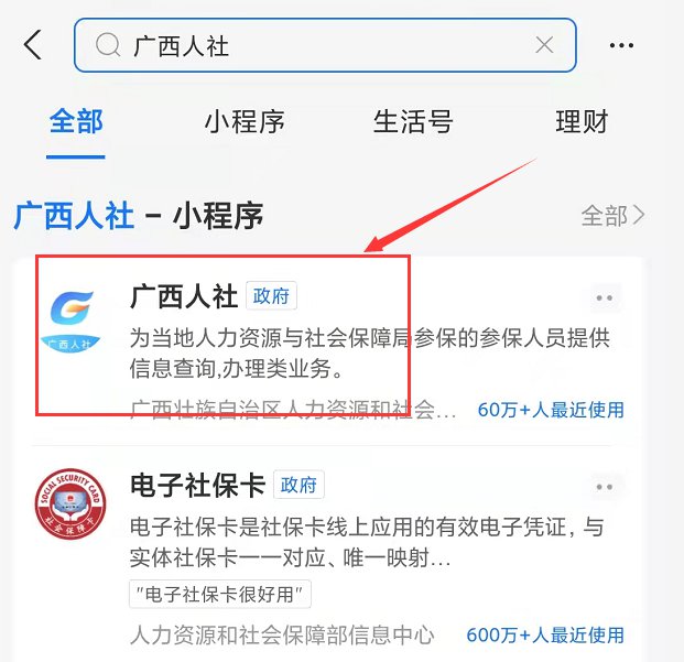 第一步:登录手机支付宝(需已进行实名认证),点击搜索栏,搜索广西人社;