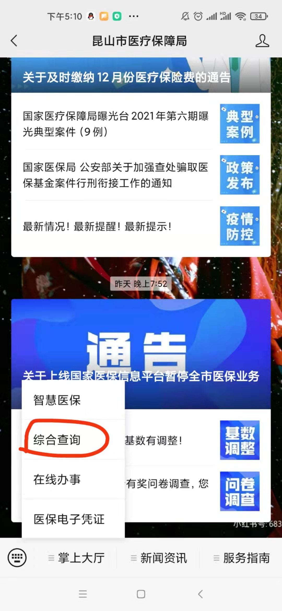 第一步,关注昆山医疗保障局公众号;