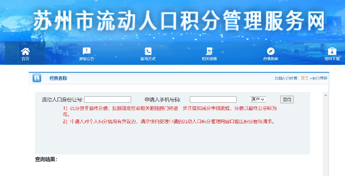 网址:http://www.jfgl.suzhou.gov.cn/homepage/points/jfcxck.jsp