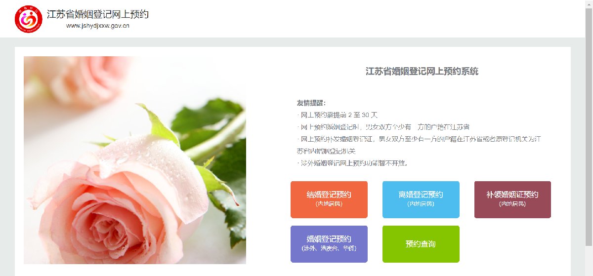 · 网上预约婚姻登记时,男女双方至少有一方的户籍在江苏省