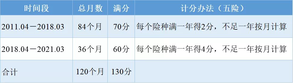 (1)2011年4月1日—2021年3月31日期间在昆缴纳的社保按社保计分方法计分。
