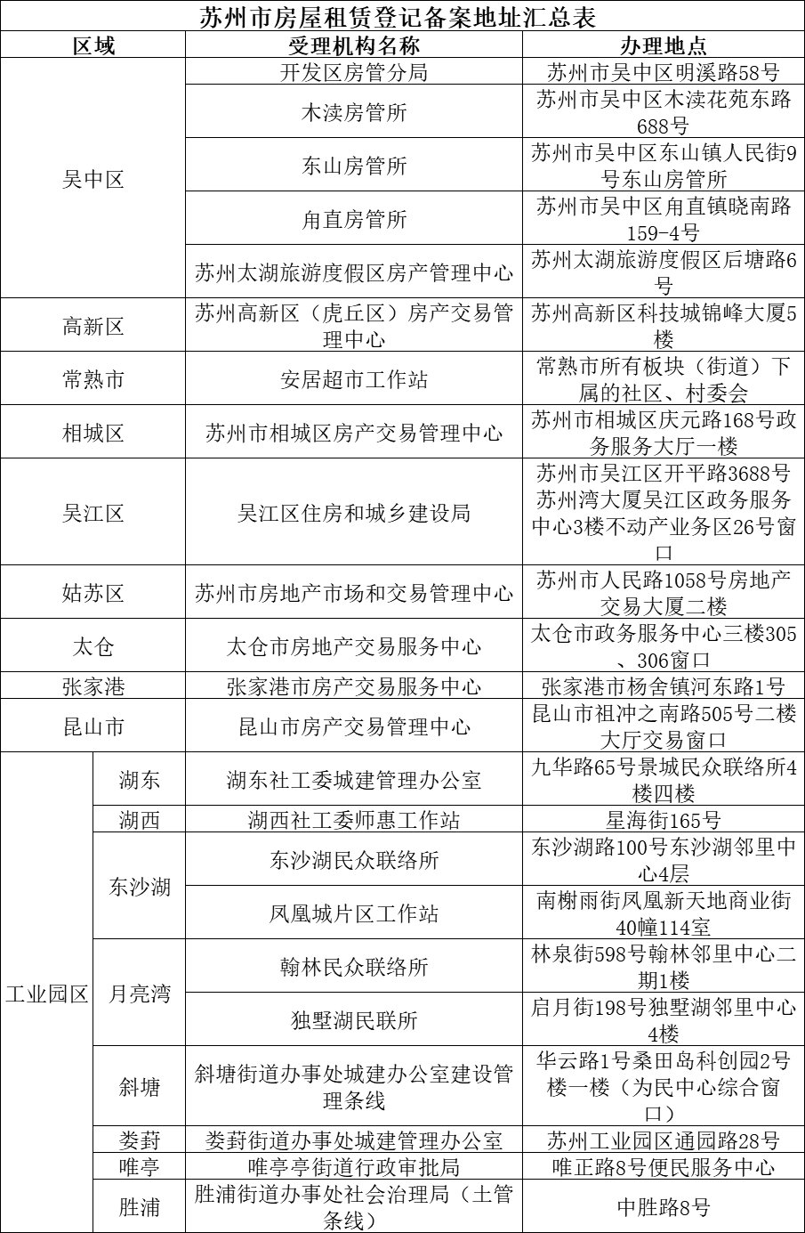 | 苏州市房屋租赁登记备案地址汇总表 |