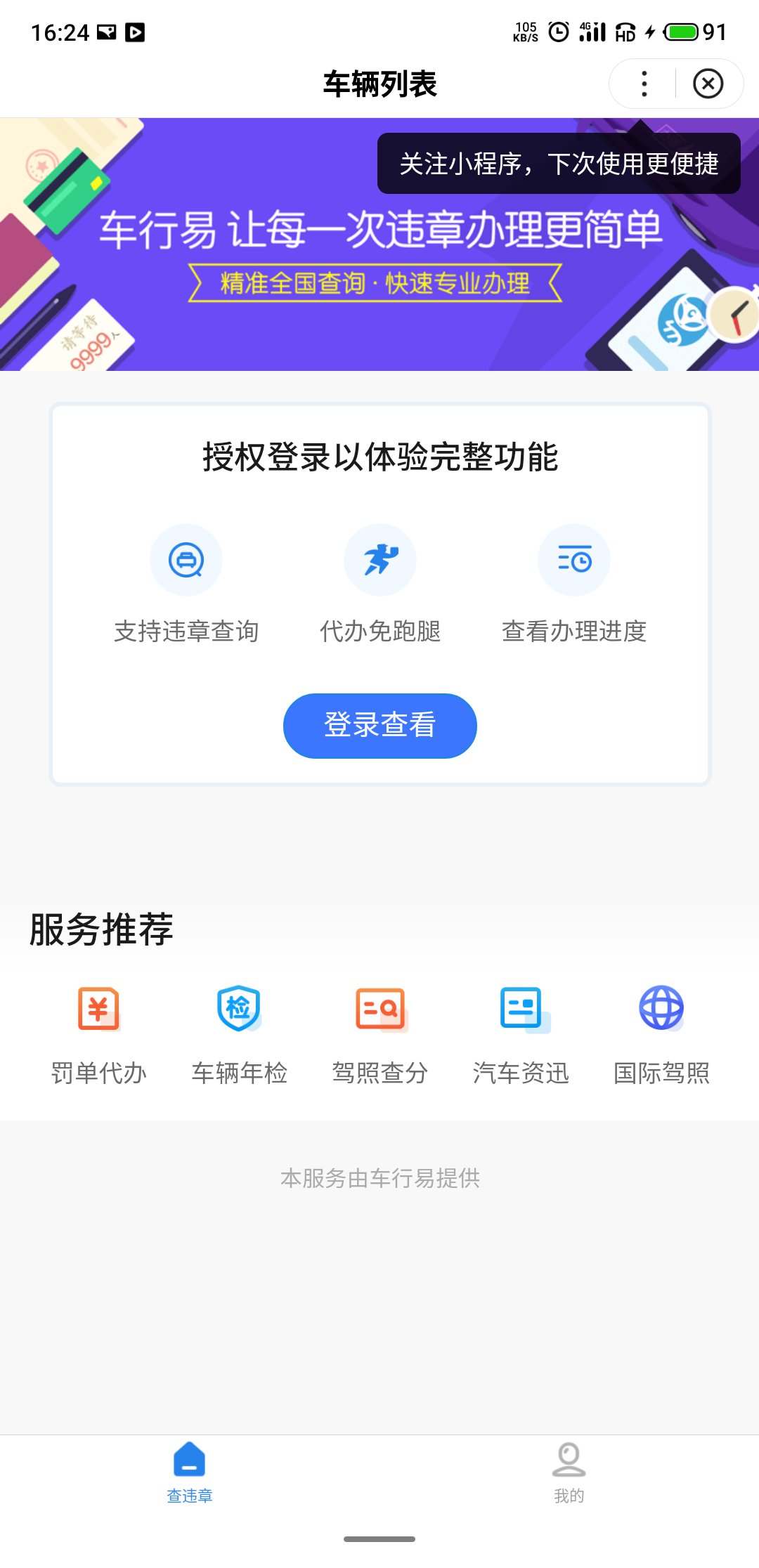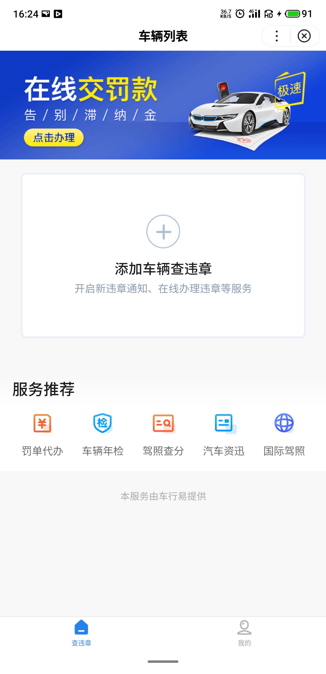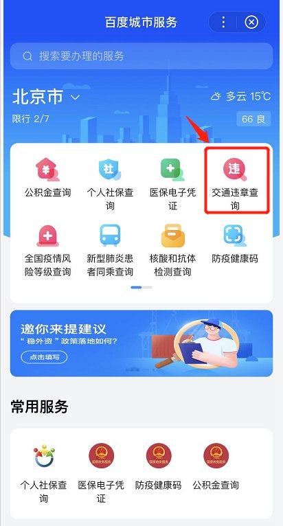 百度城市服务小程序:点击『交通违章查询』